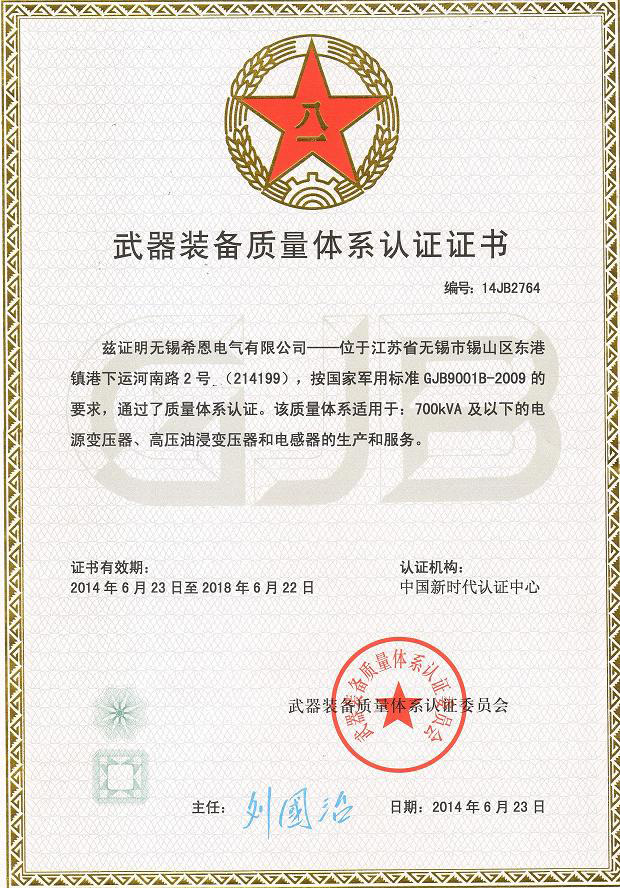 經(jīng)過3年層層嚴格審核,7月18日,希恩電氣終于取得了由武器裝備質(zhì)量管理體系認證委員會頒發(fā)的《武器裝備管理體系認證證書》。