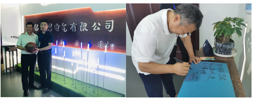 錢總向胡秘書長贈送希恩電氣建廠35周年紀(jì)念籃球 北京七星飛行有限公司總經(jīng)理張衛(wèi)東題詞